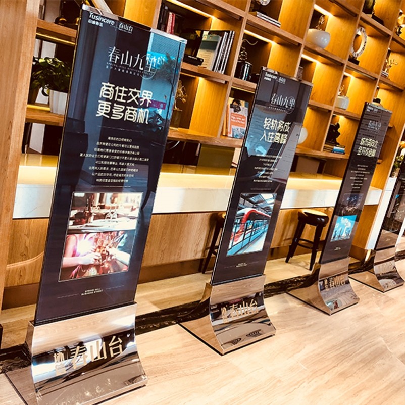 玻璃立牌不锈钢水牌广告展示牌丽屏展架立式落地宣传海报架子商场热门设计联盟服务商