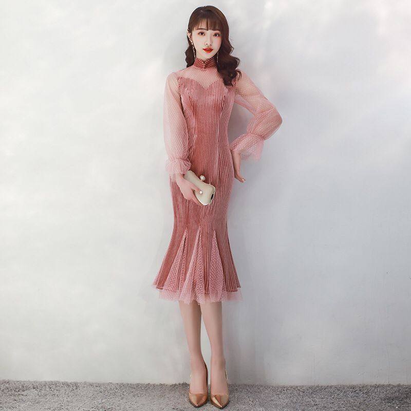 改良版旗袍网纱长袖超仙少女减龄连衣裙日常生活装宴会礼服伴娘裙热门设计联盟服务商