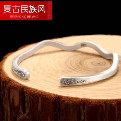 正品罗泰老银匠990纯银手镯小众设计简约银镯子足银女森系银饰手热门设计联盟服务商