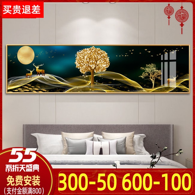 长条卧室床头现代简约主卧挂画轻奢客厅壁画招财鹿横幅装饰画温馨热门设计联盟服务商