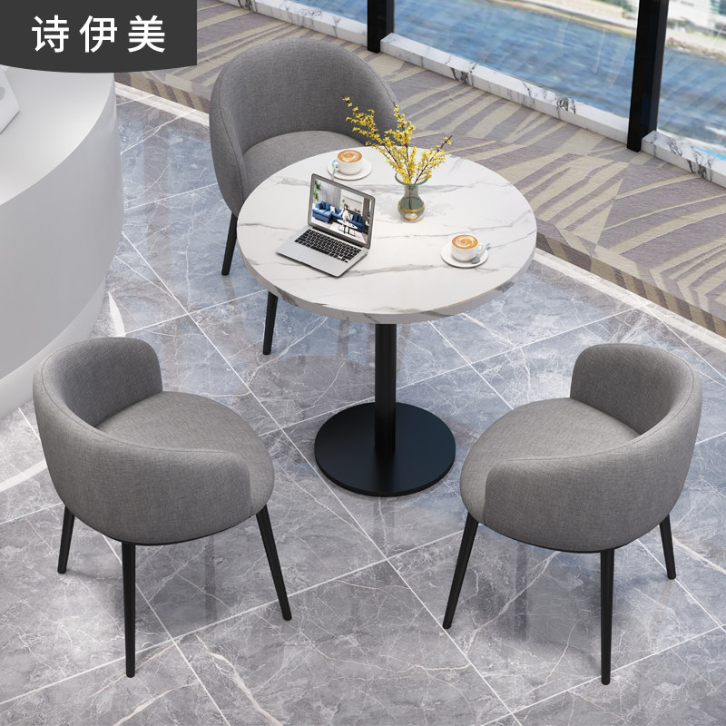 极简约洽谈桌椅组合休息区售楼处会客接待阳台休闲黑色小圆餐桌热门设计联盟服务商