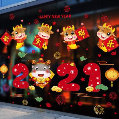 2021窗花过年新年装饰幼儿园店铺橱窗玻璃贴纸春节牛年墙贴画家。热门设计联盟服务商