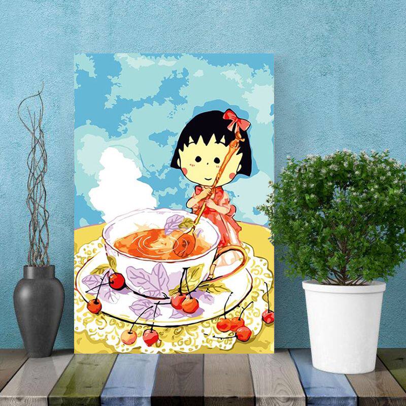 樱桃小丸子动画手绘插画diy数字油画手工填色涂鸦家居酒店装饰画热门设计联盟服务商