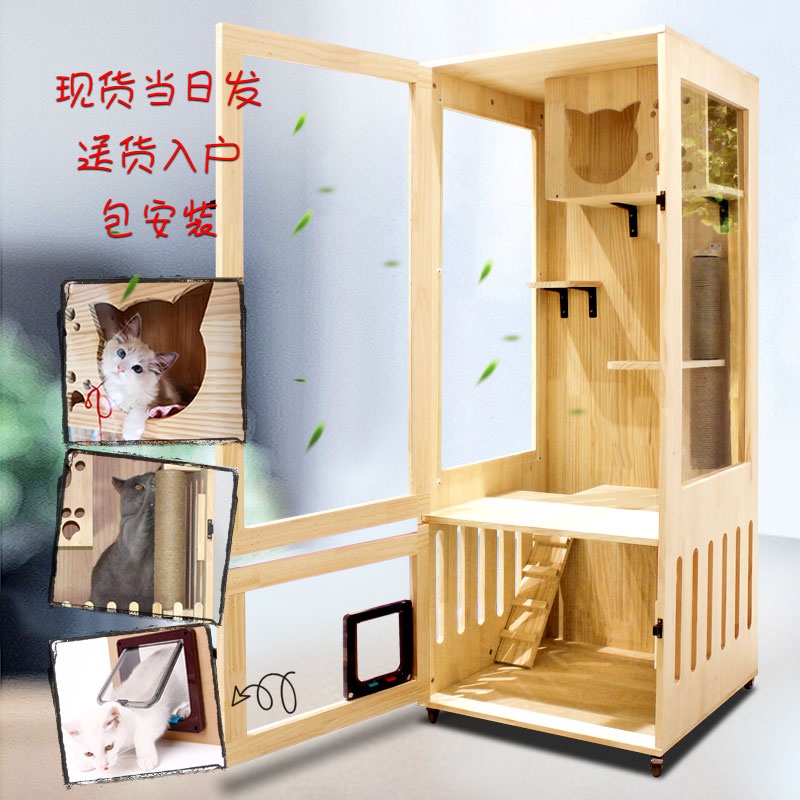 猫屋实木猫别墅家用双层三层猫笼子透明猫窝猫爬架宠物猫舍展示柜热门设计联盟服务商
