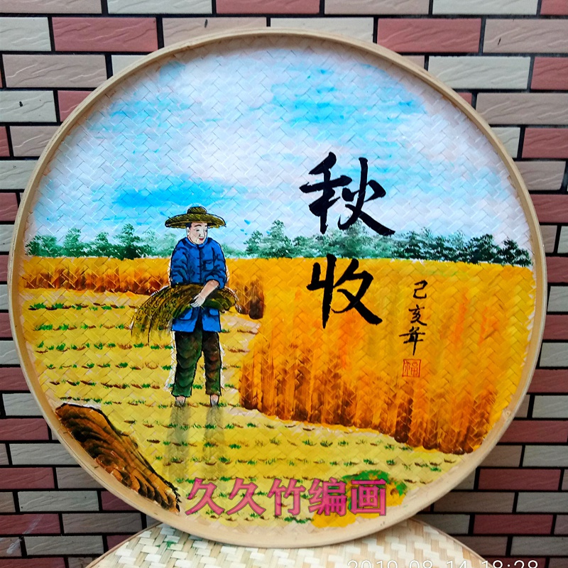 竹编农家乐装饰品田园壁画复古怀旧美丽乡村文化墙素材手绘簸箕画热门设计联盟服务商