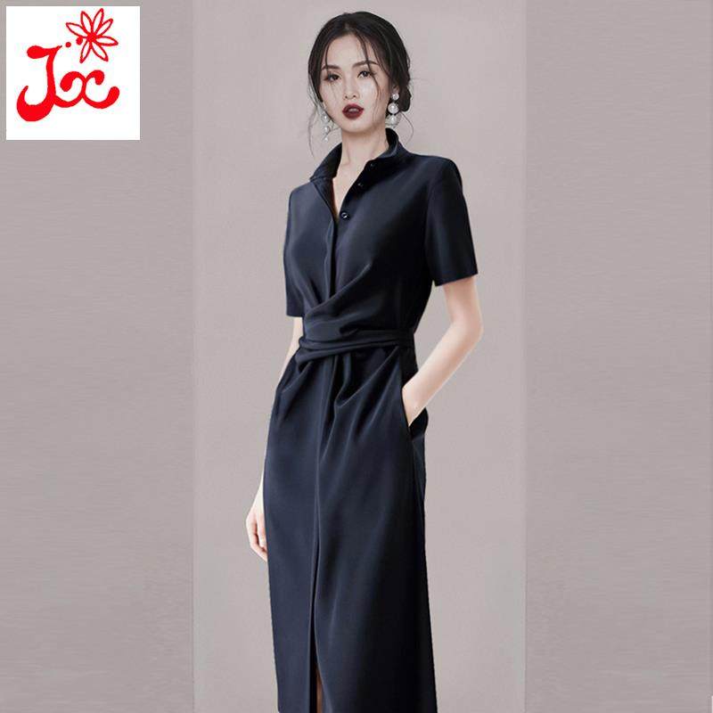 赫本风高贵优雅气质修身连衣裙设计感小众夏季法式过膝长裙女长款热门设计联盟服务商