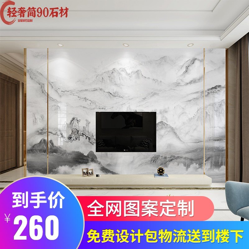 2021电视背景墙装饰客厅瓷砖山水画电视墙微晶石大理石边框影视墙热门设计联盟服务商