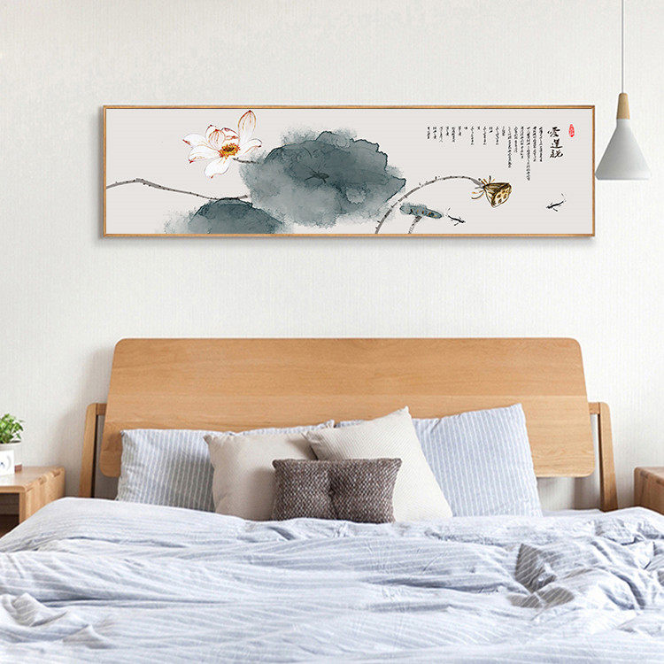 809国画荷花图卧室床头挂画客厅茶室餐厅中式装饰画横幅水墨字。热门设计联盟服务商