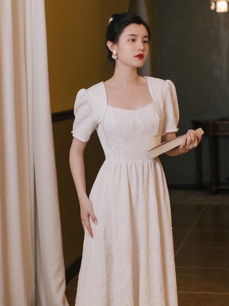 夏季法式别致设计感小众复古温柔风方领连衣裙宫廷风宴会晚宴礼服热门设计联盟服务商