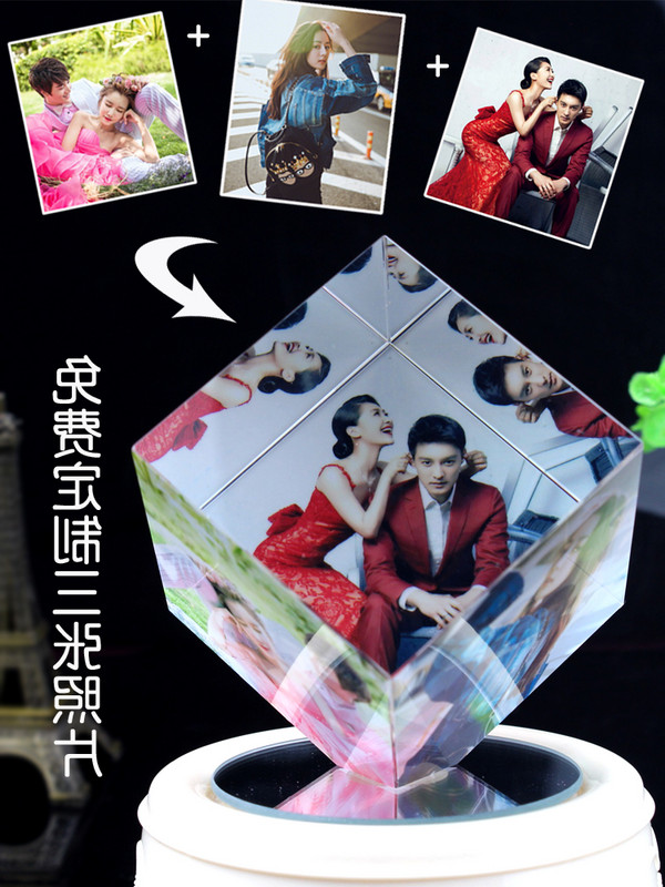 热卖的水晶球照片定制木质音乐盒八音盒发光魔方diy创意生日礼。热门设计联盟服务商