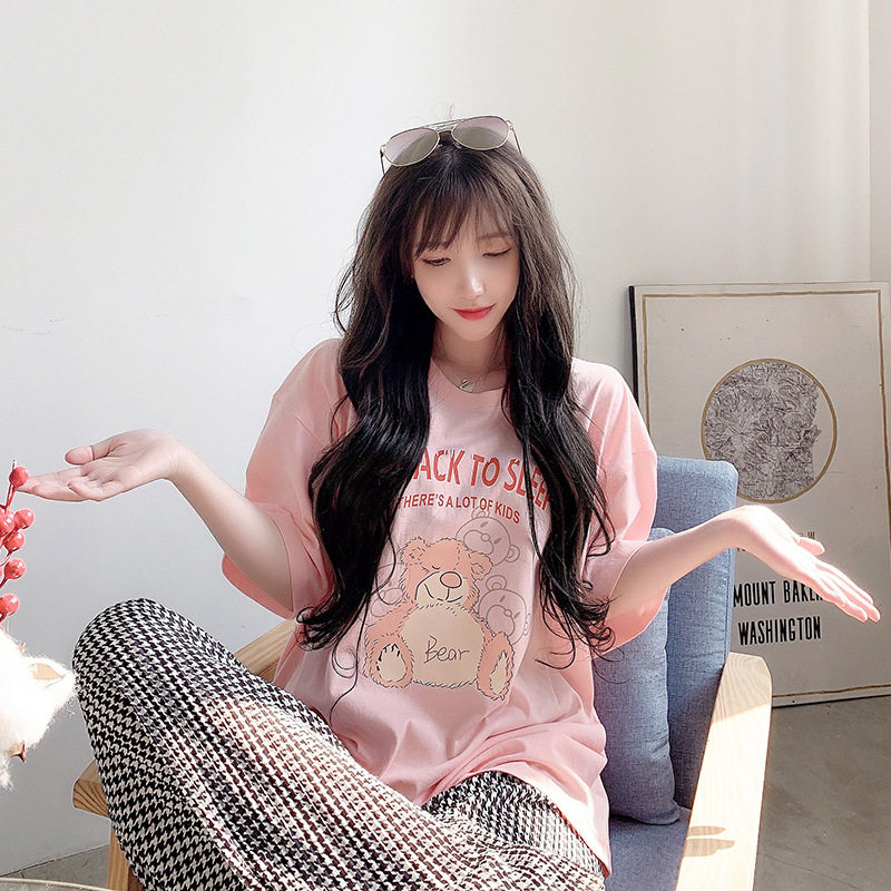 纯棉宽松短袖大码中长款t恤女2021年新夏季设计感小众韩式字母熊热门设计联盟服务商