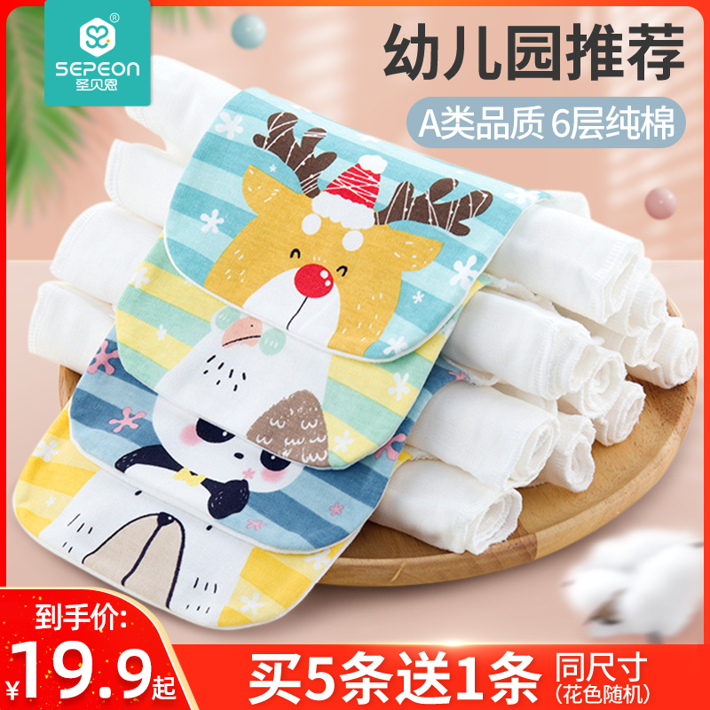 宝宝吸汗巾儿童纯棉纱布隔汗巾中大号幼儿园全棉垫背巾透气5条装热门设计联盟服务商