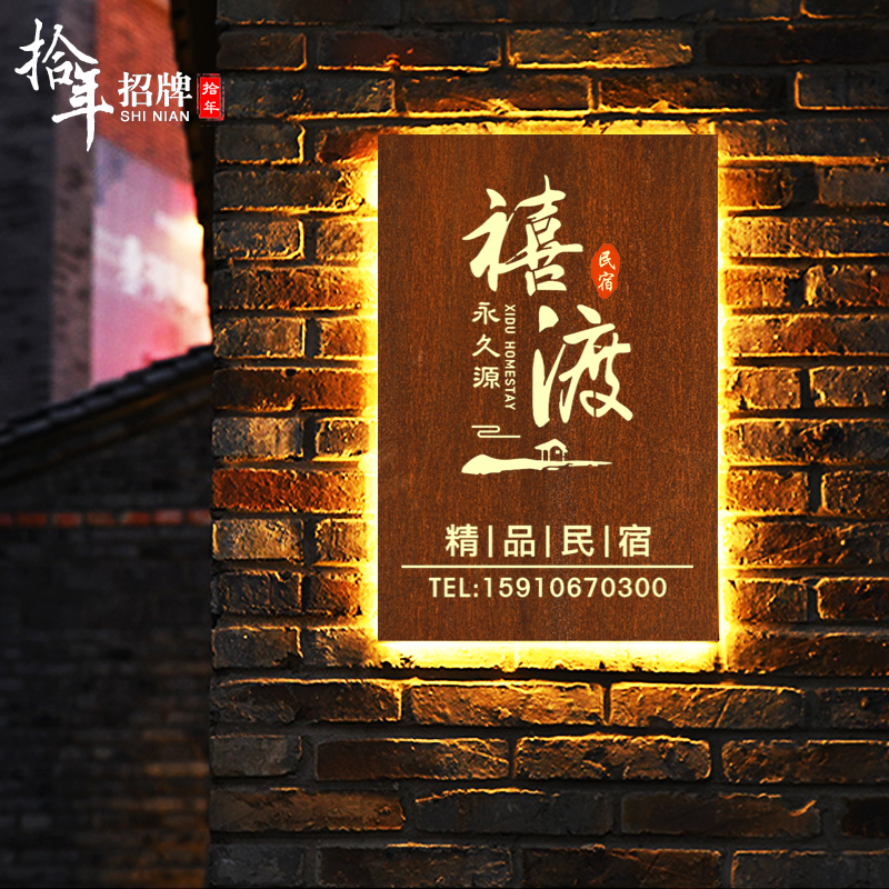 创意镂空灯箱酒店民宿做旧挂墙式招牌复古户外门头生锈发光字定制热门设计联盟服务商