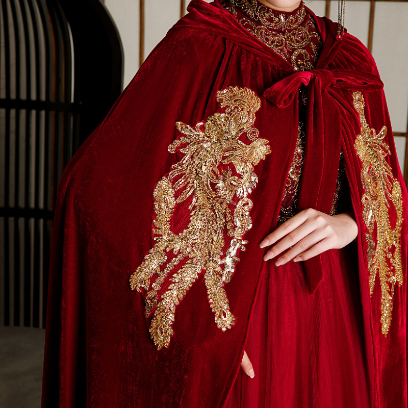 原创设计重手工珠绣蕾丝加厚加绒斗篷搭配古装汉服大批风百搭披肩热门设计联盟服务商