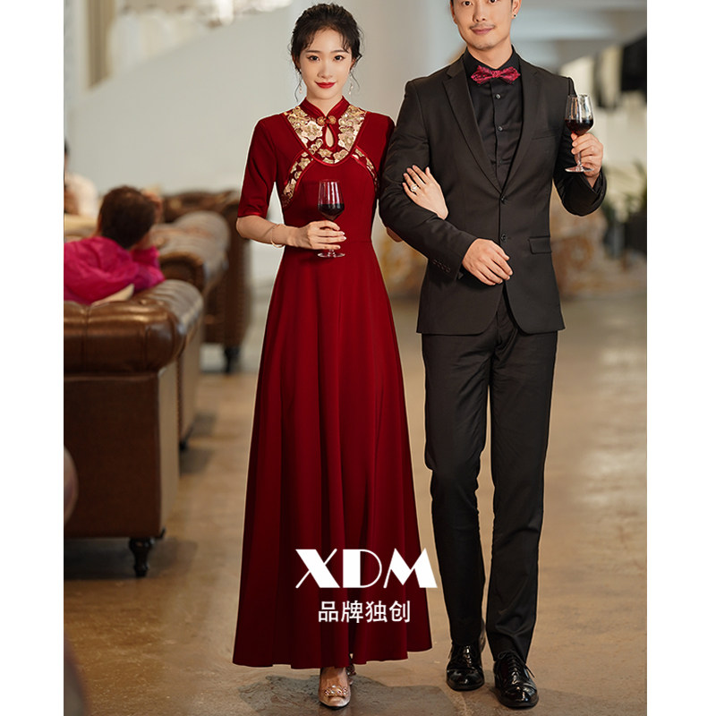 新娘敬酒服旗袍2021新款秋冬季设计感气质红色长款复古结婚礼服女热门设计联盟服务商