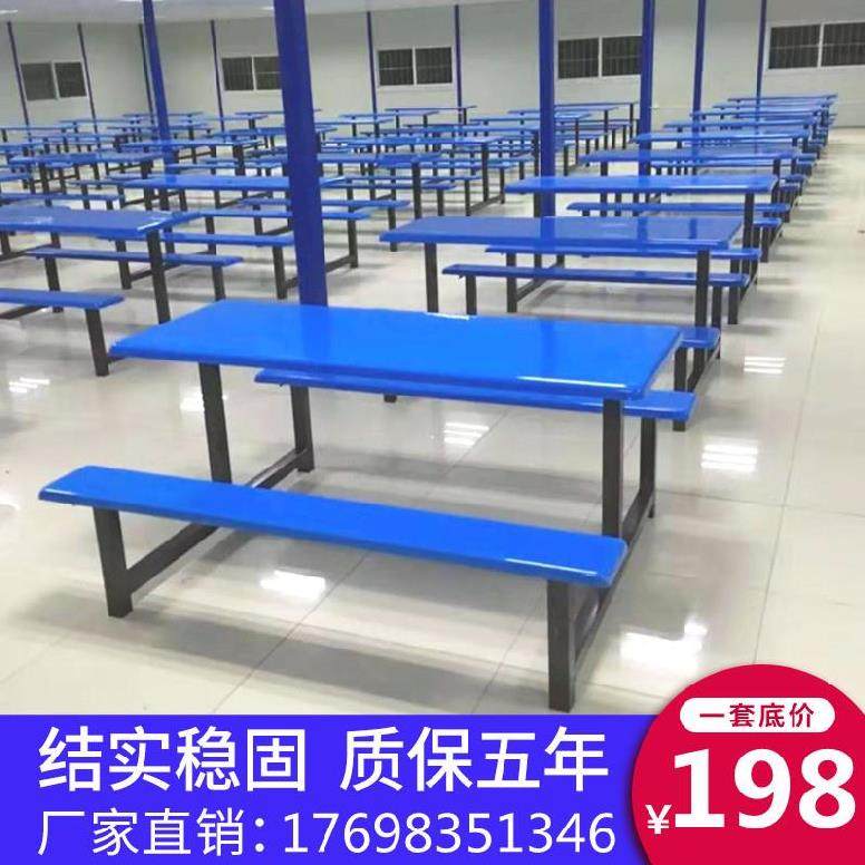 食堂餐桌椅板面饭桌六人座连体组合现代简约员工餐厅图书馆不锈钢热门设计联盟服务商