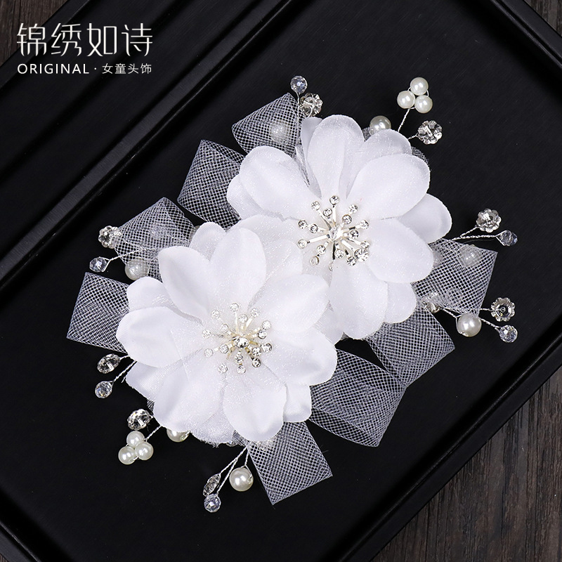 女童演出发饰儿童生日礼物发夹白色花朵头花摄影发型装饰品女热门设计联盟服务商