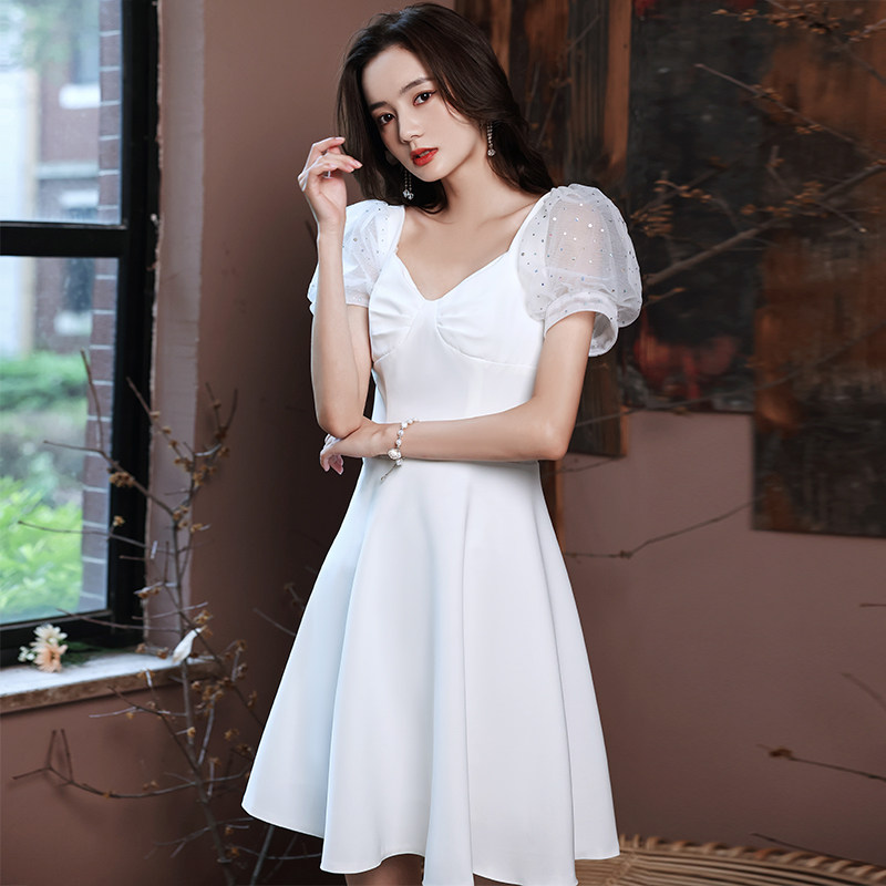 法式晚礼服女新款2021款白色宴会气质约会领证小白冉时可穿夏热门设计联盟服务商
