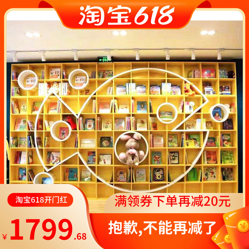创意定制整墙书柜图书馆绘本架儿童书本收纳架鲸鱼造型阅读角书橱热门设计联盟服务商