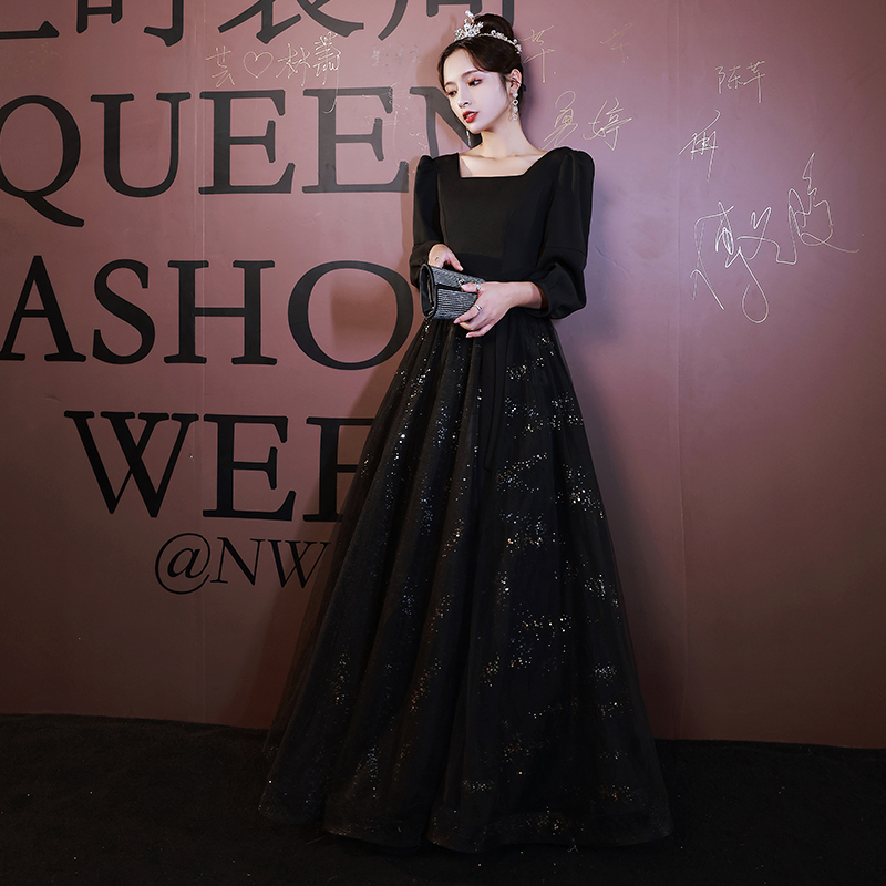 黑色晚礼服女2021新款气质宴会年会轻奢小众高端连衣裙高级设计感热门设计联盟服务商