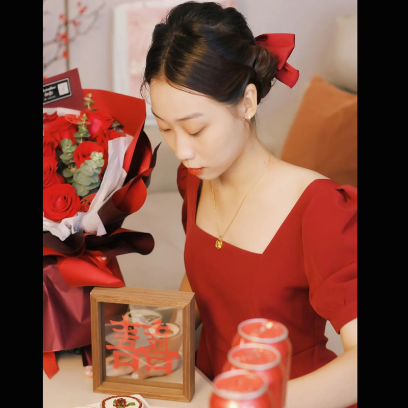 小个子回门服新娘设计感敬酒服订婚裙礼服2021新款女春秋平时可穿热门设计联盟服务商