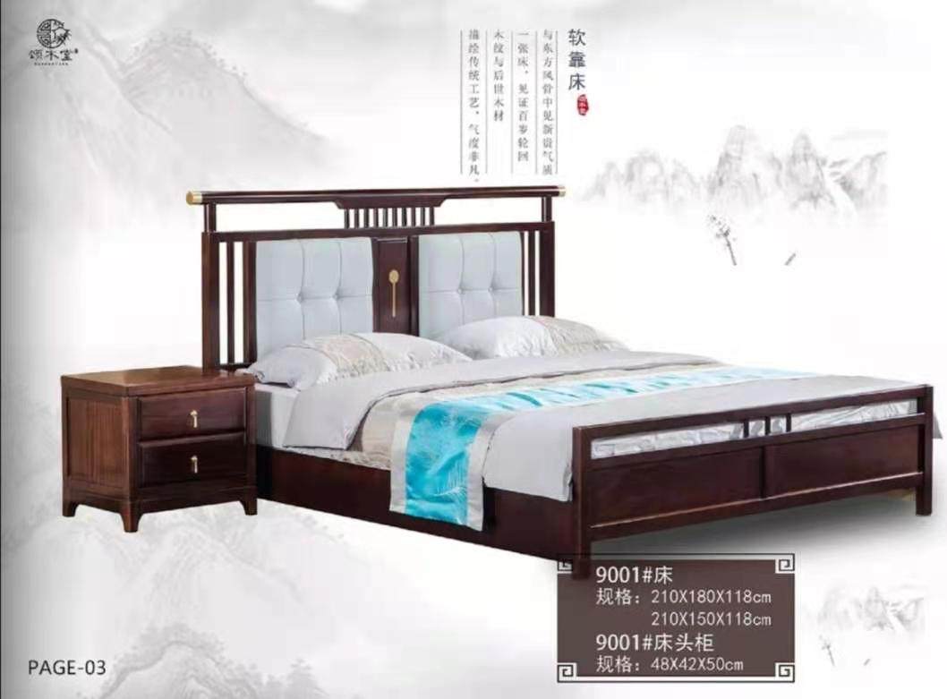 实木床新中式家具胡桃木明式双人床黑胡桃现代雕花原木设计典雅热门设计联盟服务商
