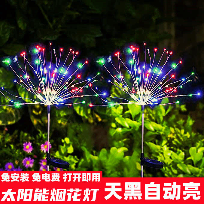 太阳能庭院插地草坪灯室外景观防水装饰灯led铜线彩灯炸烟花灯热门设计联盟服务商